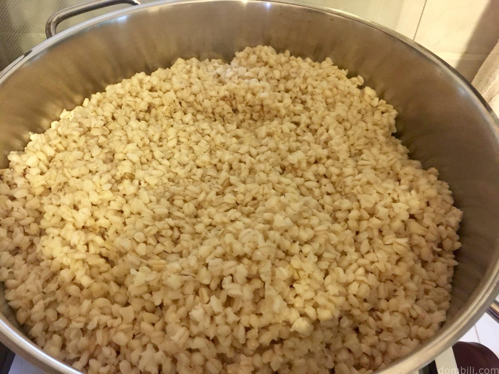 Buğday ılık su ile ıslatılır. 5-6 saat sonra üzerine su ilave edilir, 1 taşım kaynatılır ve kabarması için beklenir.