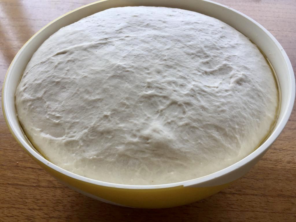 İçine 2 yemek kaşığı zeytinyağı ilave edilmiş derince kabın içine hamur koyulur ve üzeri streçle kapatılır.