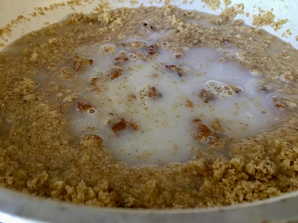Kavurma işlemi bitince ocak çok kısılır ve sütlü karışım yavaş yavaş kavrulmuş irmiğin üzerine katılır. Bu işlem sırasında çok ısı çıkacağı için dikkat edilmelidir.