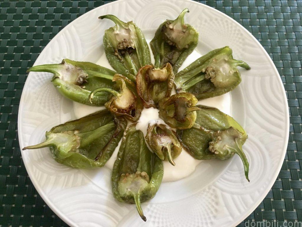 Bu kızartma küçük dolmalık ve köy biberleri ikiye bölünmeden yapılabilir.