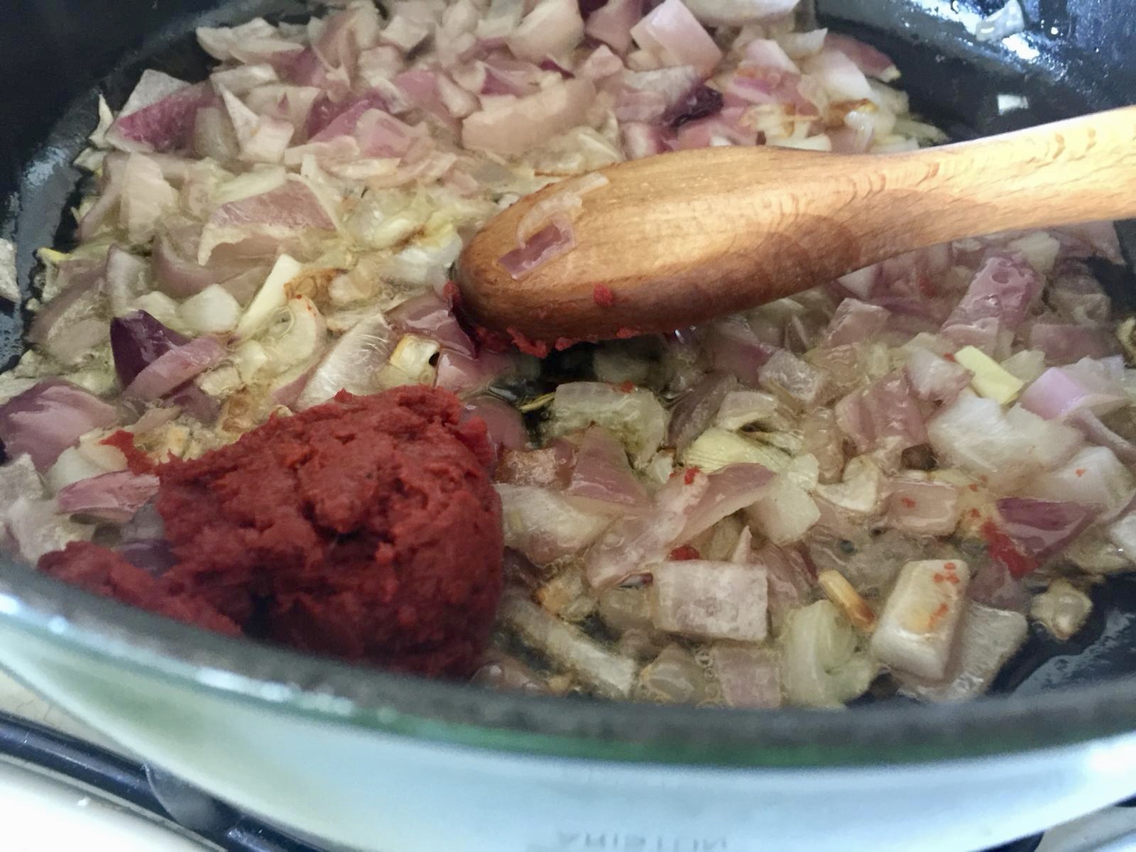 Soğanlar biraz büyükçe doğranıp sıvı yağda kavrulur.