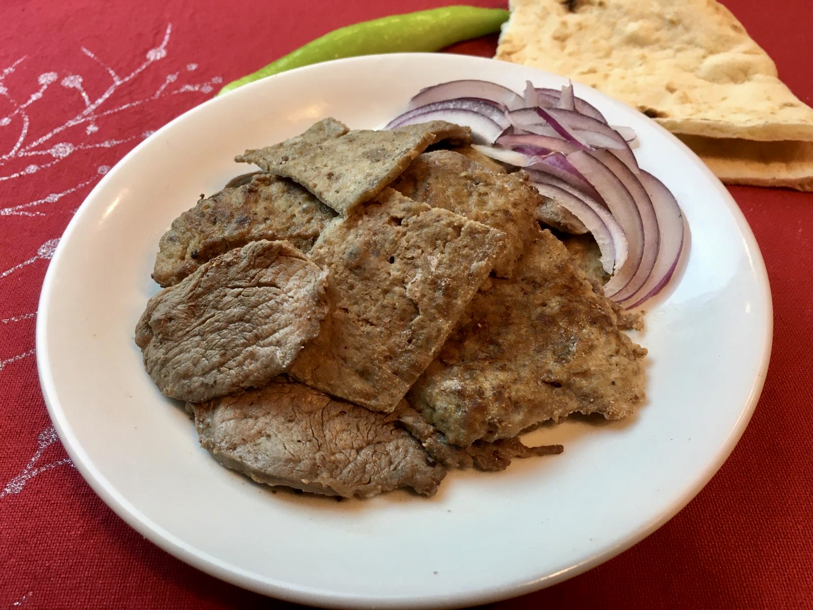 1 adet kuru soğan rendelenip suyu sıkılır. Soğanın suyuna 1/2 çay bardağı sıvı yağ, 1 çay kaşığı kırmızı pul biber ve tuz ilave edilip etin terbiyesi hazırlanır. İnce doğranmış etler sosun içine koyulup en az bir saat bekletilir.