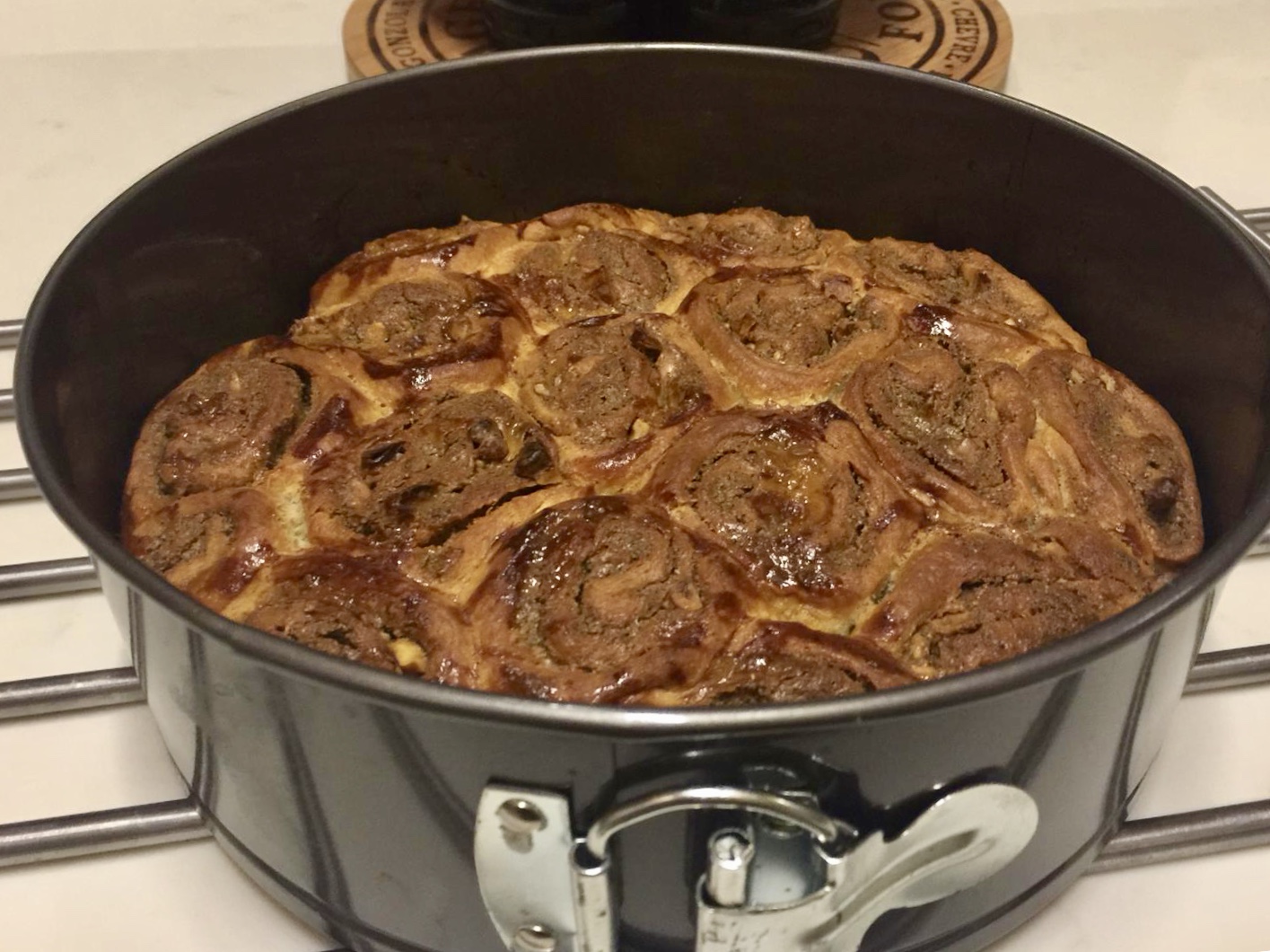 Rulo yapılan hamur iki parmak genişliğinde kesilir ve yan yana kek kalıbına dizilir.