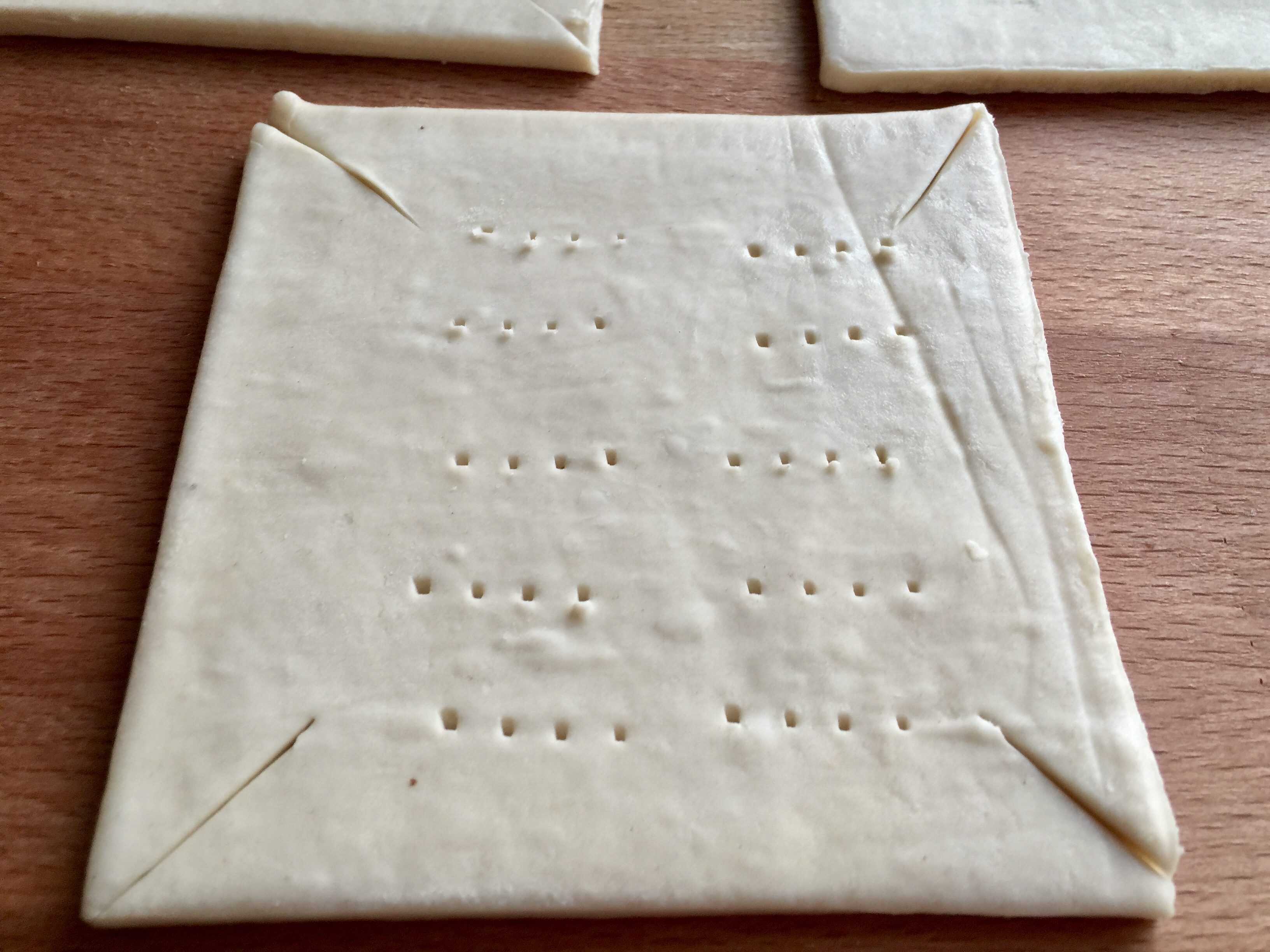 Milföy yaprakları oda ısısına gelince elimizle hafifçe bastırılarak veya merdane ile inceltilir. Hamurun kabarmaması için çatalla üzerleri delinir.