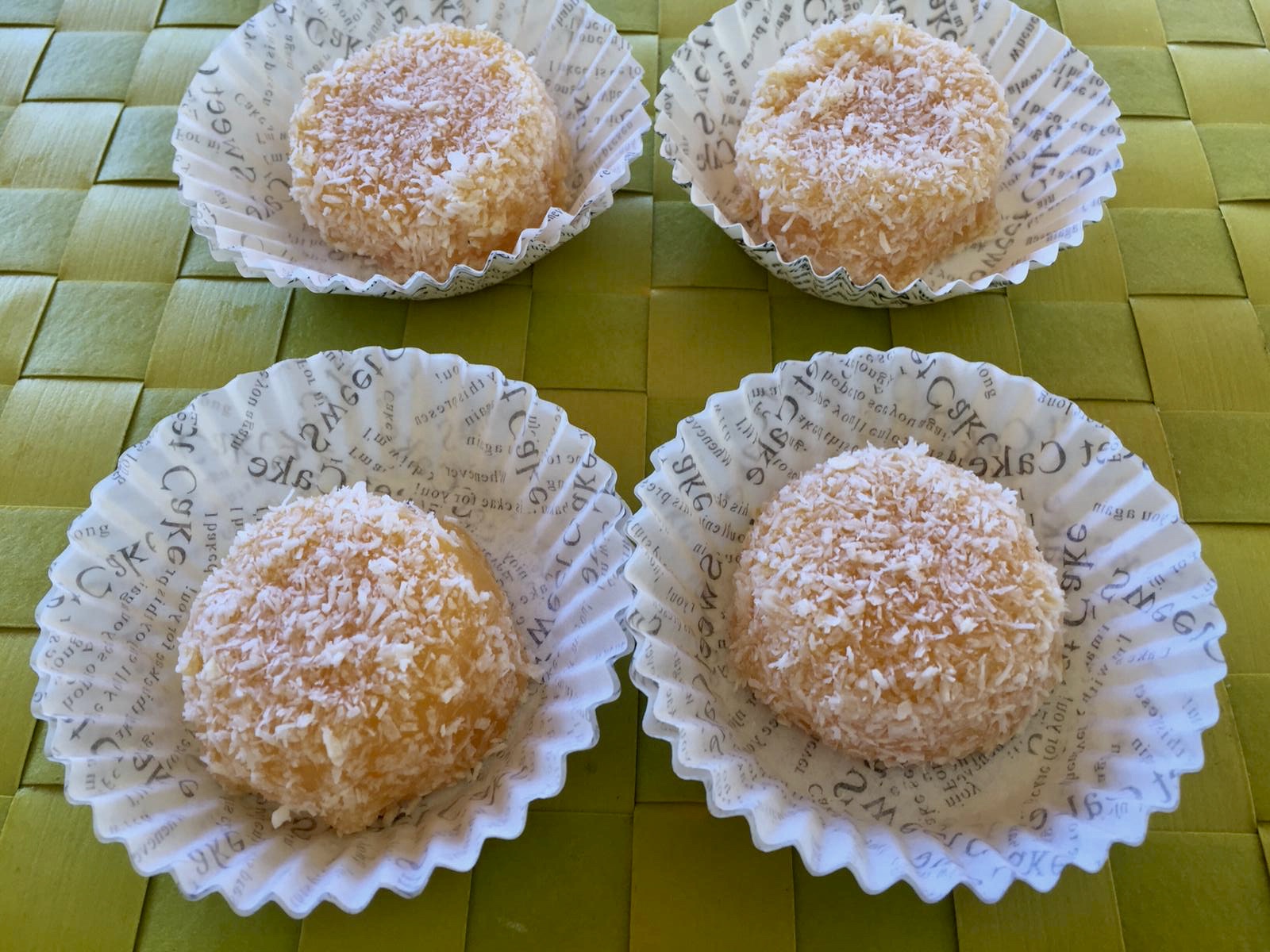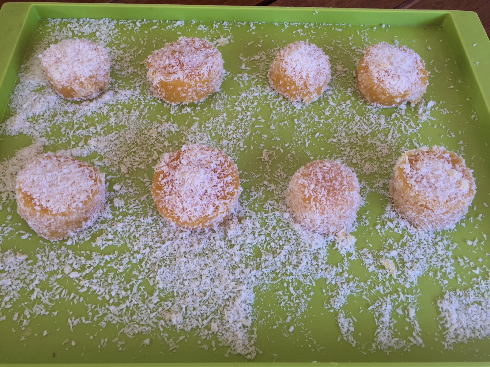 Hindistan cevizine bulanan lokumlar servise hazırdır.