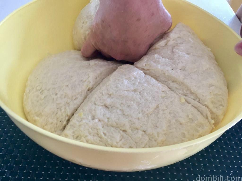 Ekmek yapmak için yağlı elimizle tek parça hamur alınır.