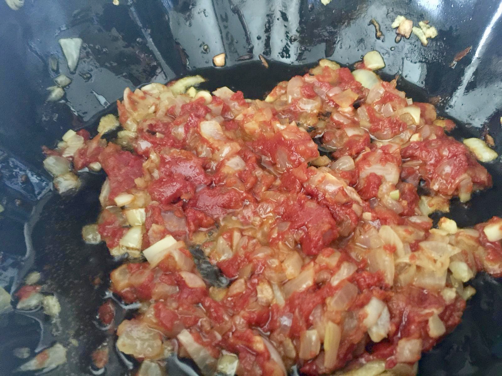 Yemeklik doğranmış kuru soğan sıvı yağda kavrulur, salça eklenir.