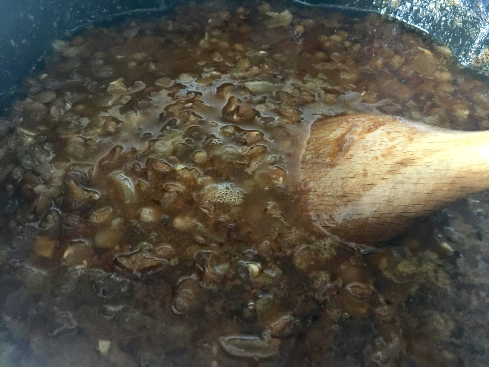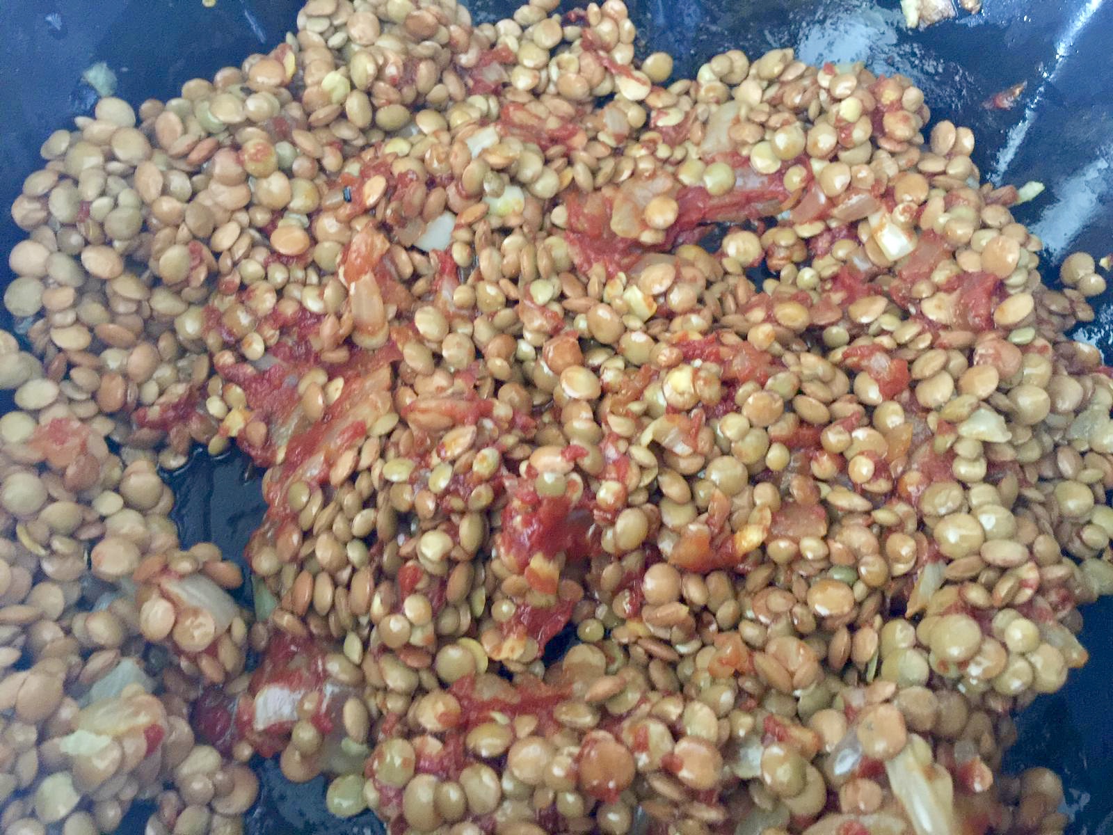 Yıkanmış mercimekler ilave edilir.