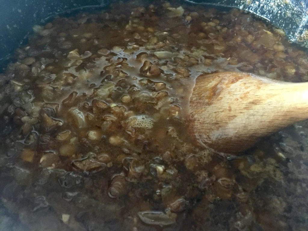7 su bardağı sıcak su ilave edildikten sonra kapağı kapalı tencerede kısık ateşte 20 dakika pişirilir.