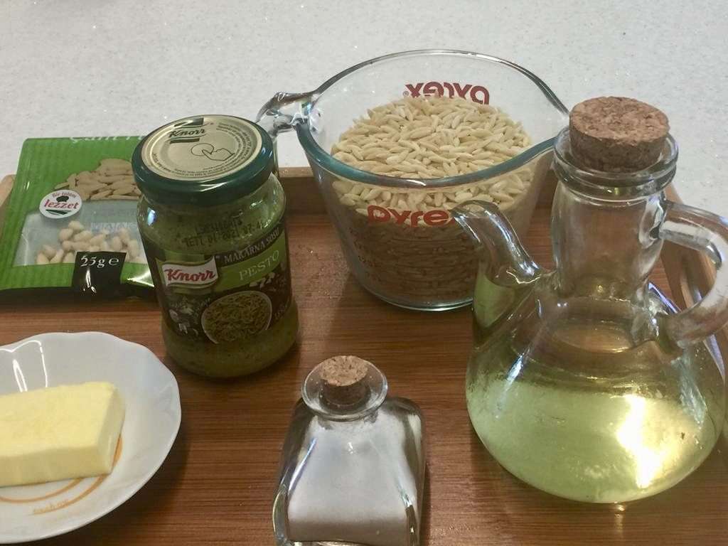 Şehriye pilavına 2 yemek kaşığı pesto sos ilave edilip tahta kaşıkla karıştırılır.