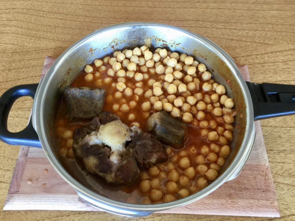 3 su bardağı kaynar su ve tuz ilavesi ile düdüklüde kısık ateşte en az 1 saat pişirilir.