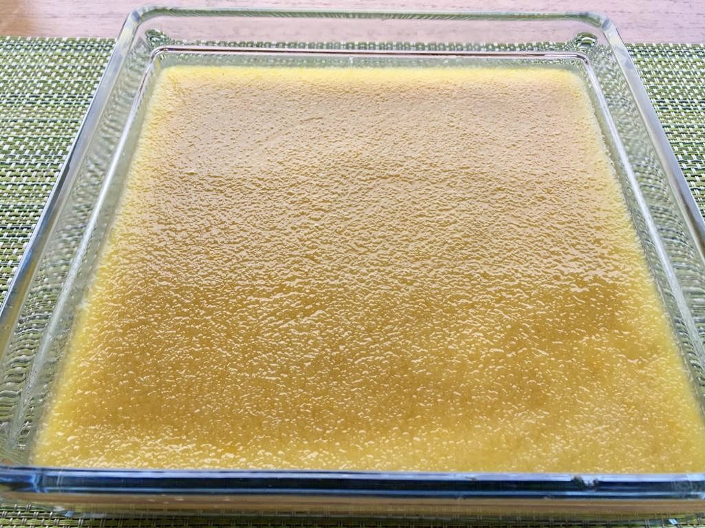 Karışım 25*25cm ölçülerinde hafif ıslatılmış kare cam kaba dökülür ve soğuması için buzdolabına koyulur.