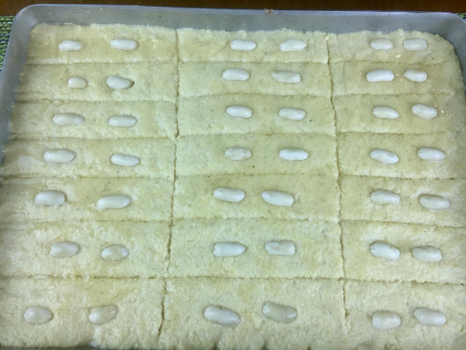 Çok güzel oluyor. Ben tepsiyi şerbetleyip hamuru tepsiye döküyor bir gece bekletiyorum. Ertesi gün kesip fıstıkları üzerine koyup pişiriyorum. Sizinde ellerinize sağlık.