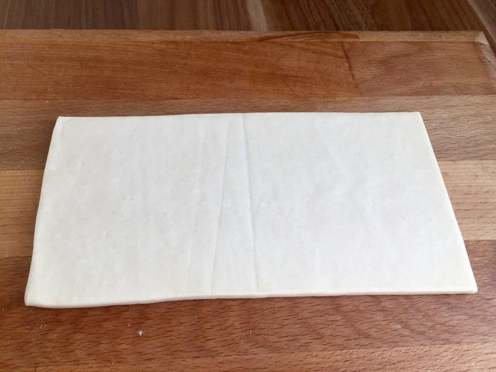 İkili parçadan oluşan milföy hamurlarının bir tanesi tezgah üzerine serilir. Hamur kabarmaması için çatalla birkaç yerinden delinir.