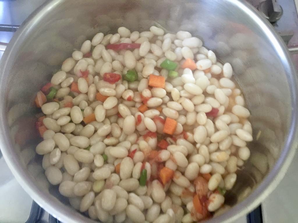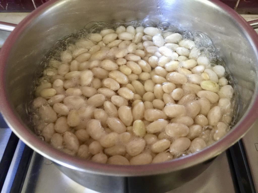 İç fasulyeler 10 dakika haşlanır ve suyu süzülür.